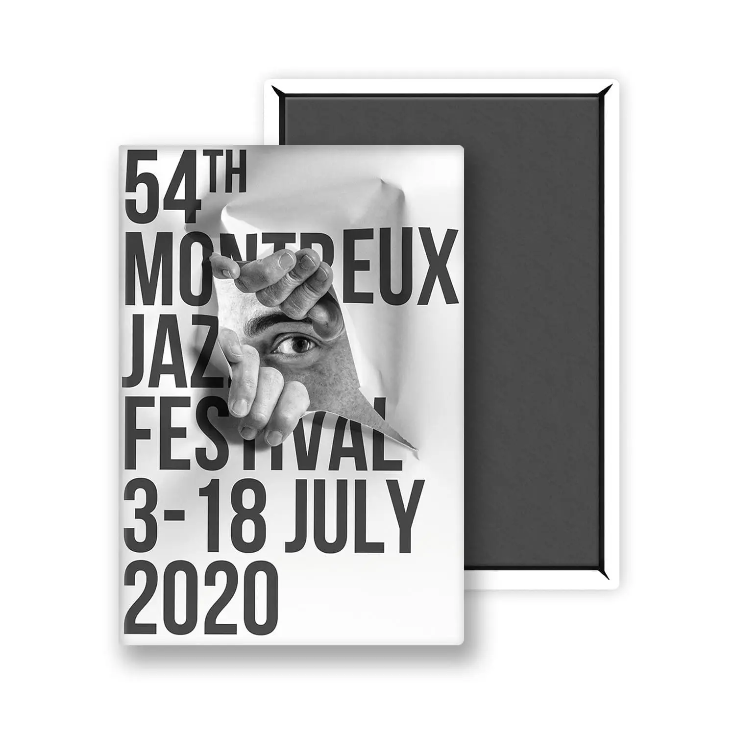 Ce magnet fait partie de la gamme JR. Noir et blanc, illusion, trompe-l’œil: on retrouve ces éléments dans l’œuvre à la fois sobre et percutante créée pour le Festival au moyen de ses médiums de prédilection, photo et papier. L’affiche de l’édition est mise en abyme, transpercée non sans malice par un personnage qui fait écho à la curiosité des spectateurs. Ce procédé, que JR intitule Paper Portraits, est mis en œuvre depuis plusieurs années à l’occasion de la cérémonie de remise des Oscars du cinéma.