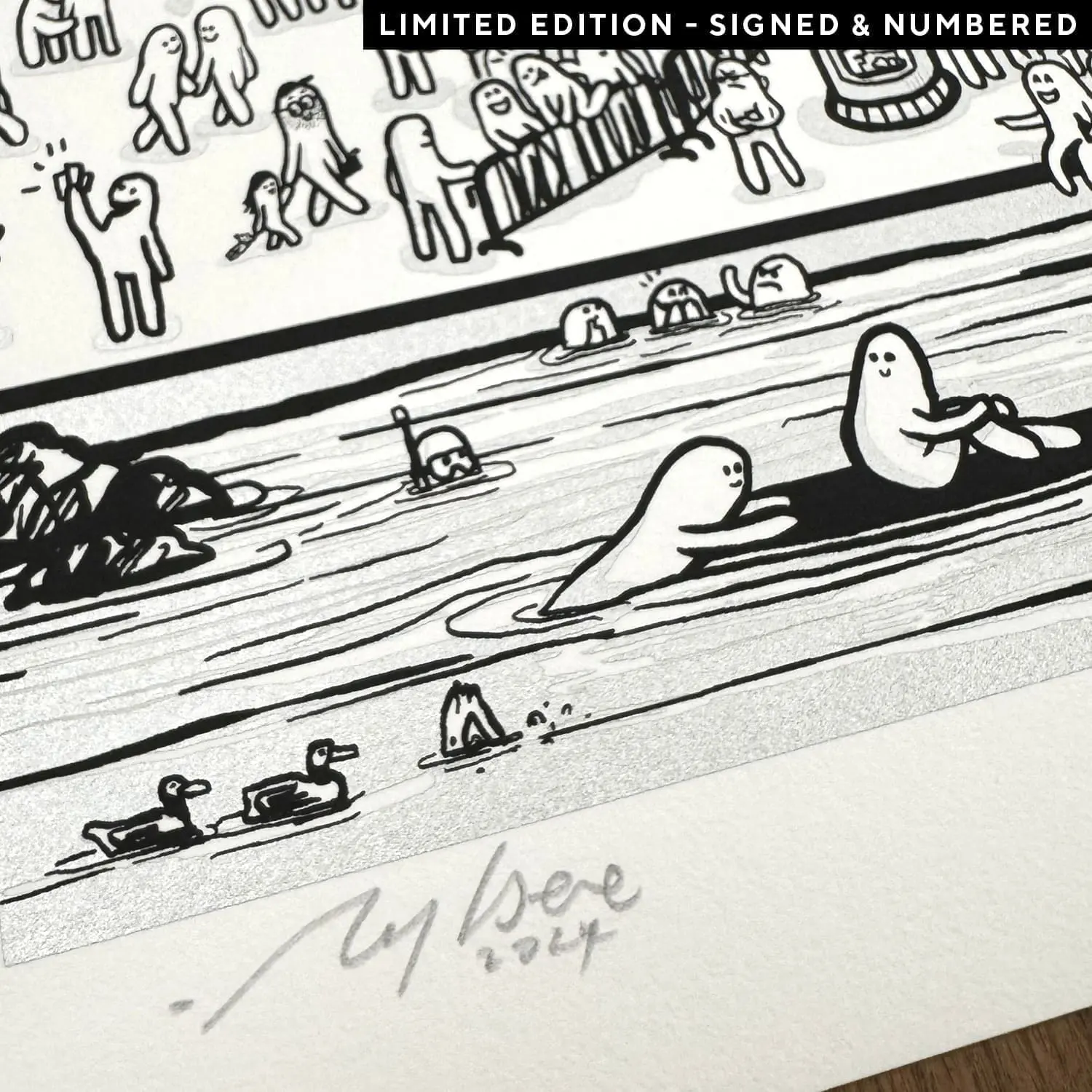 À la manière d’un Où est Charlie, Rylsee a peuplé son œuvre de multiples scènes de la vie quotidienne du Festival. Chaque regard porté sur l’affiche révèle de nouvelles références et aventures. À vous de dénicher les situations les plus cocasses!